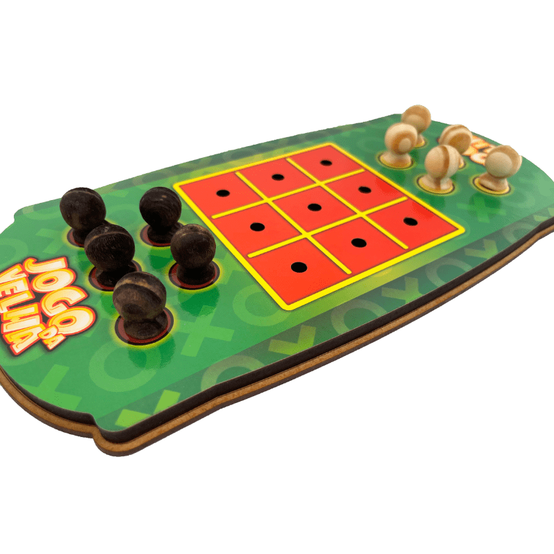 O Jogo da velha da Maninho é produzido com madeira e utiliza cores vibrantes para estimular ainda mais a diversão..