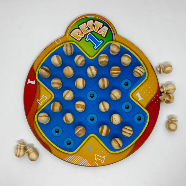 O tabuleiro Resta Um é um brinquedo que auxilia diretamente no desenvolvimento de raciocínio lógico e elaboração de estratégia.