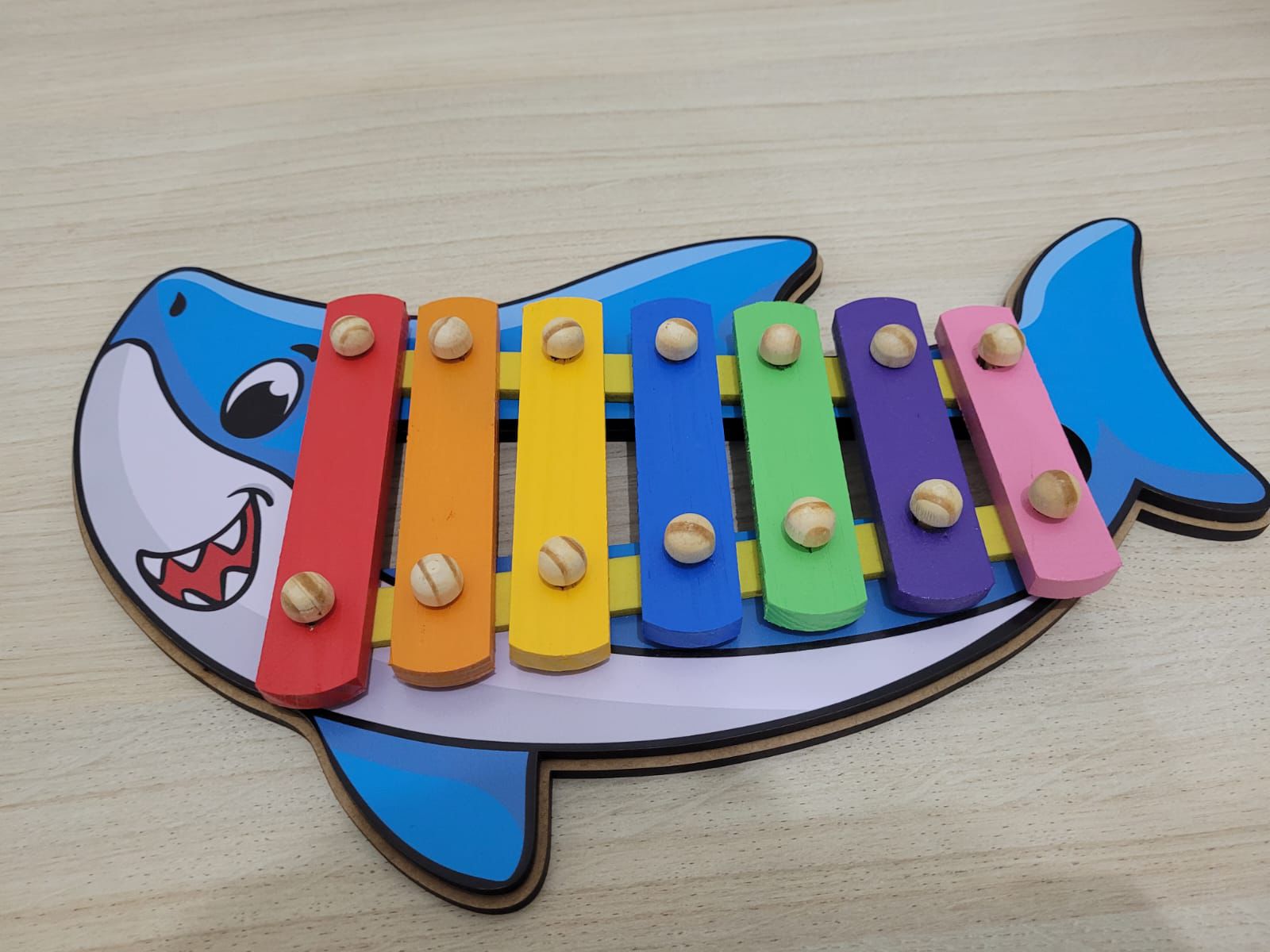 Xilofone brinquedo musical infantil educativo da marca Maninho Brinquedos, geralmente de madeira, com lâminas coloridas (ou em formato de animais) para as crianças explorarem sons, desenvolverem coordenação motora, percepção auditiva e criatividade, sendo um instrumento de percussão divertido e pedagógico.